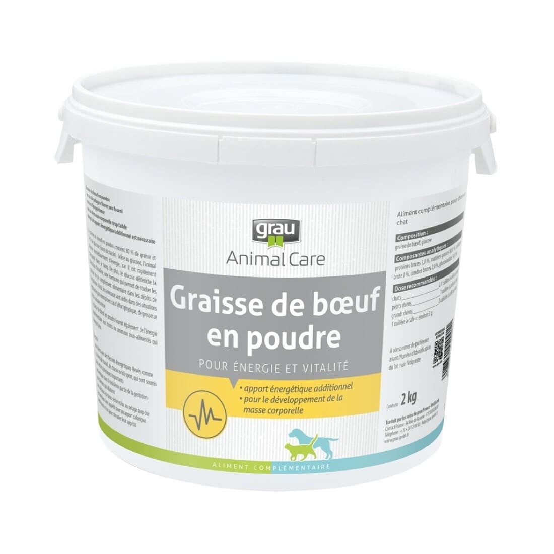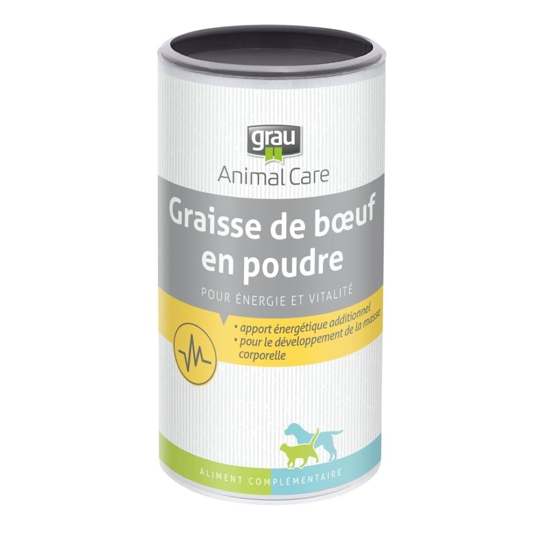 La poudre de graisse de boeuf de GRAU est le complément alimentaire idéal pour les chiens et les chats manquant d'appétit ou trop maigres.
